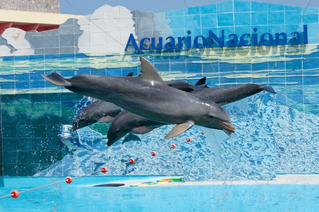 Esse é o caso do Acuario Nacional de Cuba, no bairro de Miramar. O aquário abriga golfinhos, tartarugas marinhas, tubarões e peixes tropicais coloridos, para a alegria das crianças.